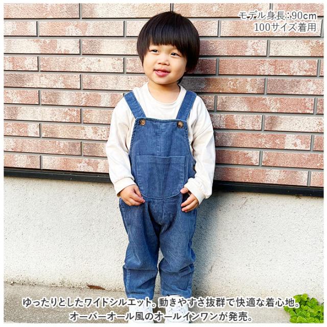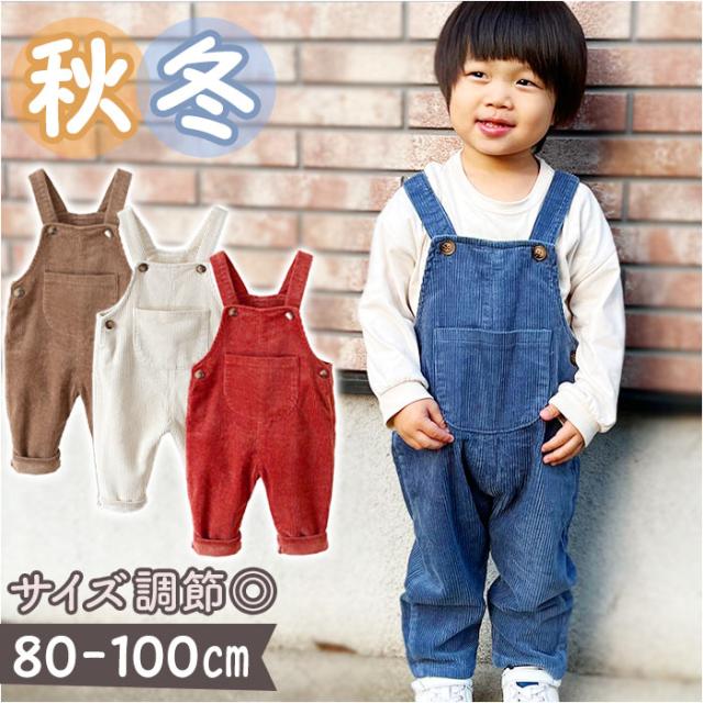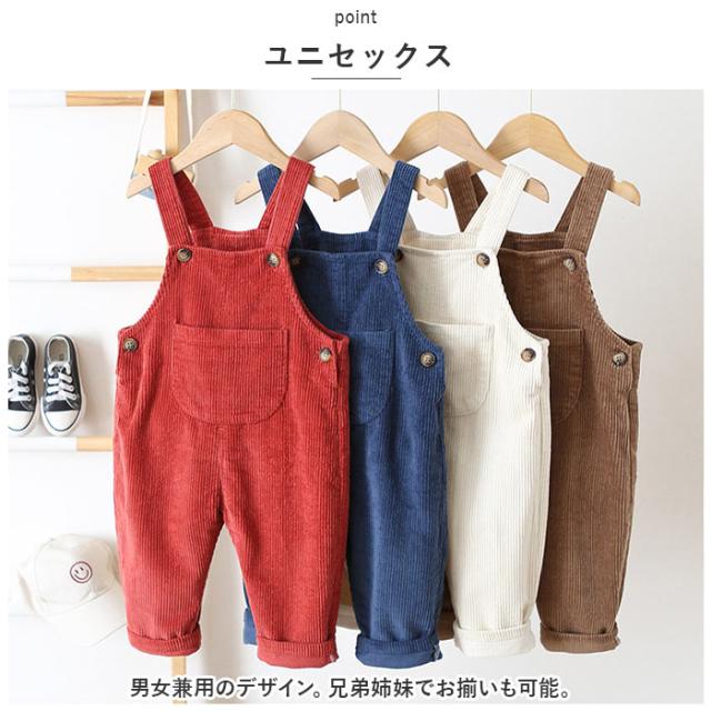 キッズ オーバーオール 長ズボン ベビー 通販 オーバーオール パンツ オールインワン 子供服 女の子 男の子 子供 幼児 こども 子ども ゆったり ワイド コーデュロイ 秋 冬 無地