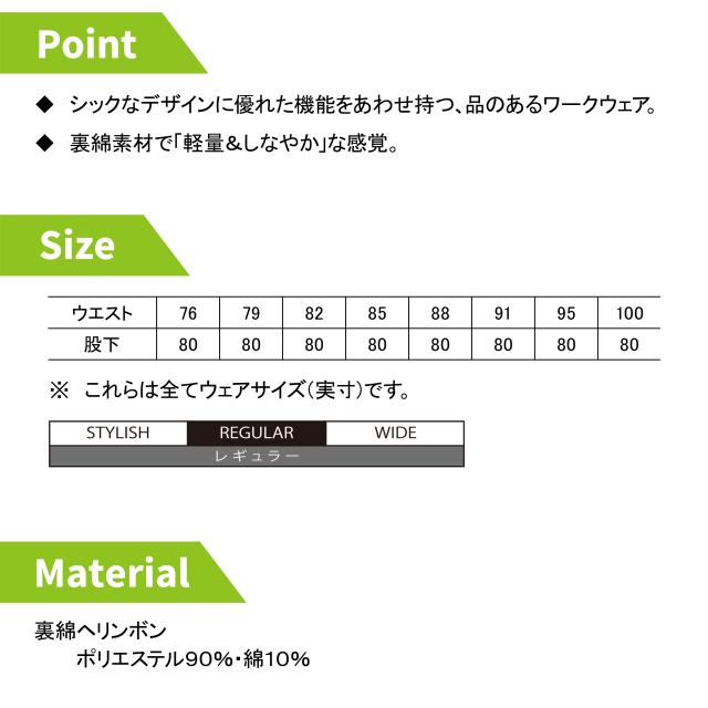 コーコス 作業服 オールシーズン G-9403 裏綿ヘリンボンノータックスラックス 76-100