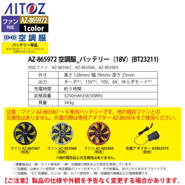 【AZ-865972 空調服バッテリー18VBT23211】