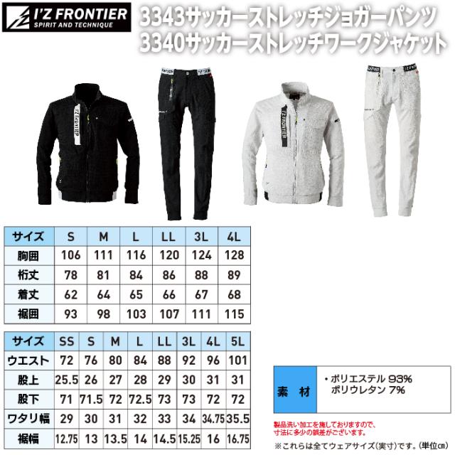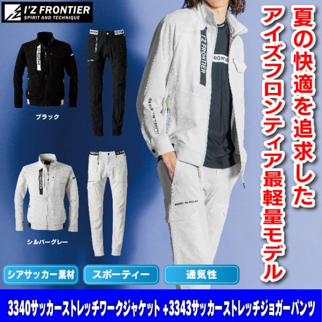 アイズフロンティア 作業服 上下セット 3340 サッカーストレッチワークジャケットS-4L と 3343 サッカーストレッチジョガーパンツ SS-5L 春夏用