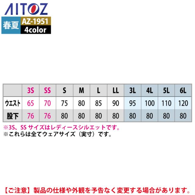 アイトス 作業服 作業着 Aitoz 春夏用 Aitoz AZ-1951 カーゴパンツ(ノータック)(男女兼用) 3L-4L