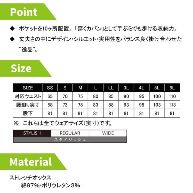 ◇ヨコ伸び25%以上・スマホも入るマルチポケット・長財布も入るカーゴポケット・大容量ポケット(フロント・バック)