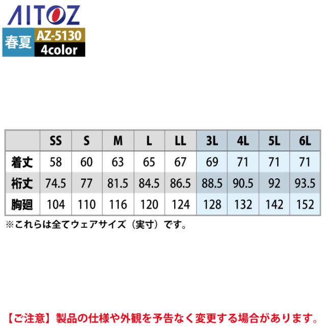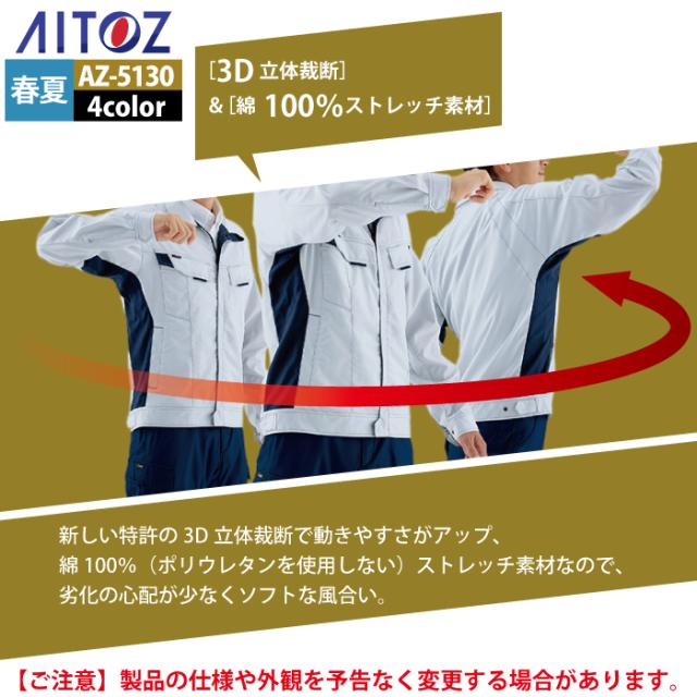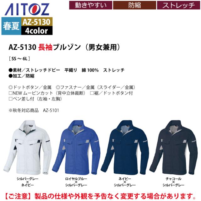 アイトス 作業服 作業着 Aitoz 春夏用 Aitoz AZ-5130 長袖ブルゾン(男女兼用) 6L