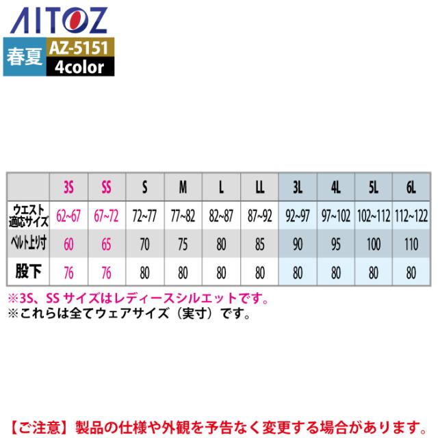 アイトス 作業服 作業着 Aitoz 春夏用 Aitoz AZ-5151 カーゴパンツ(ノータック) 5L