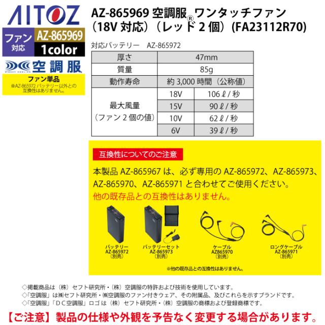 【AZ-865969 空調服ワンタッチファン18V対応FA23112】