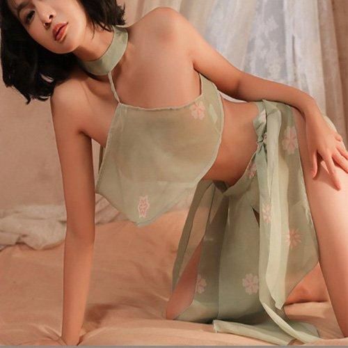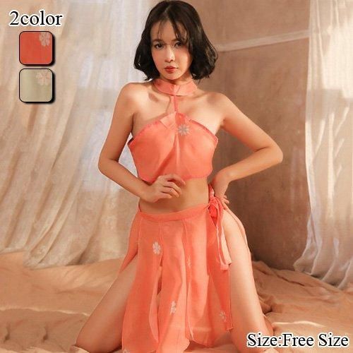 【グラシア】 コスプレ 衣装 コスチューム 仮装 セクシー キュート コス 踊り子 スリット 色香 異国情緒 ビューティ 透け感 可憐 バックスタイル セパレート グリーン オレンジ フリーサイズ