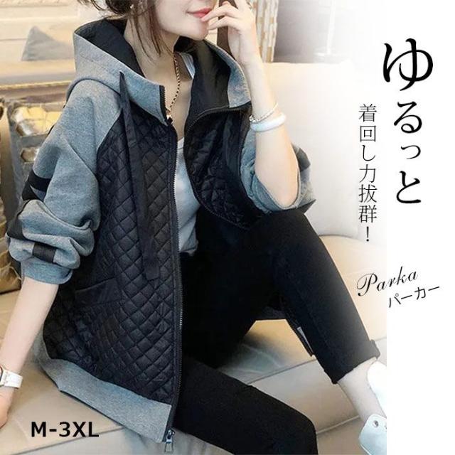 パーカー ボリューム袖 レディース ブルゾン 切り替え ジップアップパーカー チュニック丈 マウンテンパーカー 長袖 コート アウター ミドル丈 トップス 大きいサイズ 体型カバー 羽織り フルジップ ビッグシルエット 個性派 おしゃれ 普段着 大人 お出かけ 配色 秋