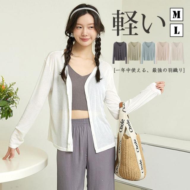 サマー ニット レディース 長袖 カーディガン Vネック カットソー ショート丈 ニットカーディガン UV ボレロ トップス 前開き ライトアウター リブニット 柔らかい スプリングコート 羽織り 伸縮性 肌着 紫外線対策 冷房対策 シャリ感 重ね着 高品質 シンプル アウトドア 夏