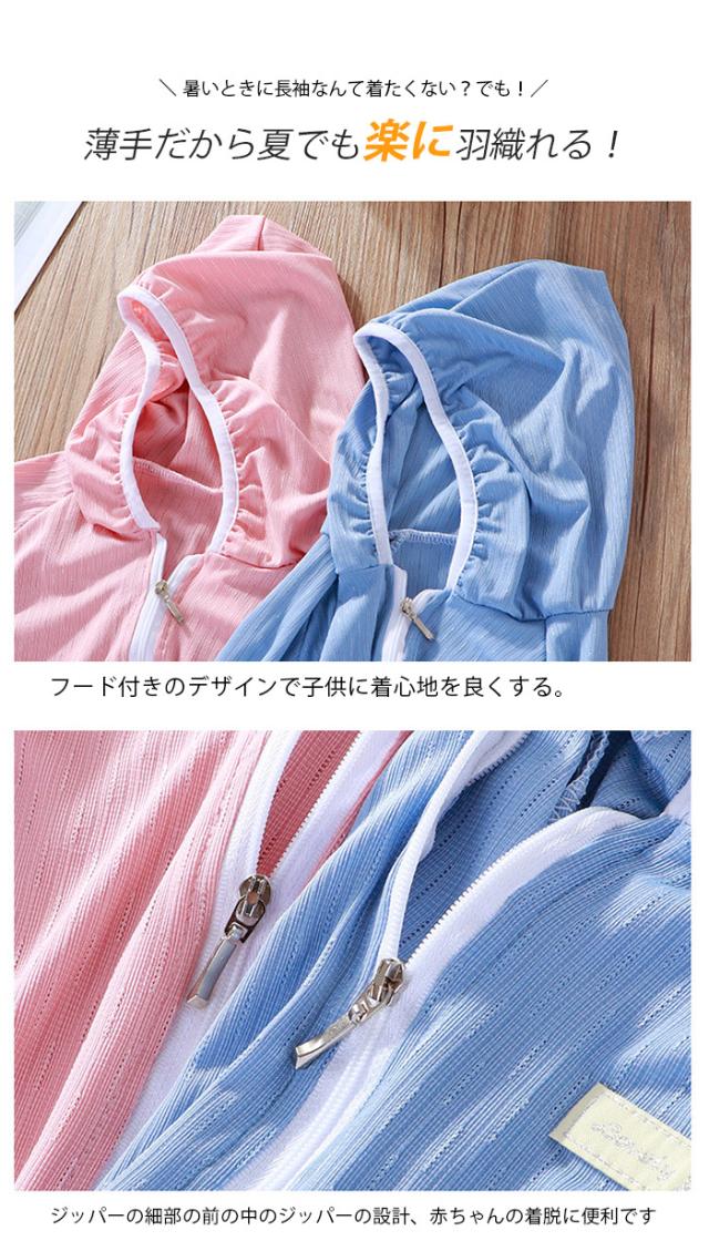 パーカー UV 長袖 ラッシュガード キッズ UVカット パーカー長袖 子供 アウター 薄手 前開き フード付き カーディガン 大きいサイズ トップス ジャケット 子供服 接触冷感 速乾 透け感 汗取り 紫外線 冷房対策 日焼け防止 虫除け 登山 ハイキング 小学生 夏 90cm〜150cm