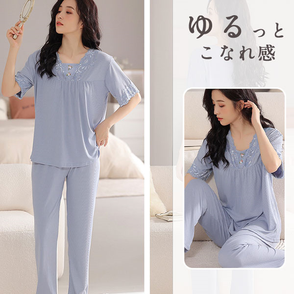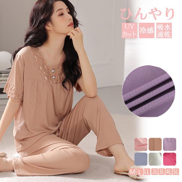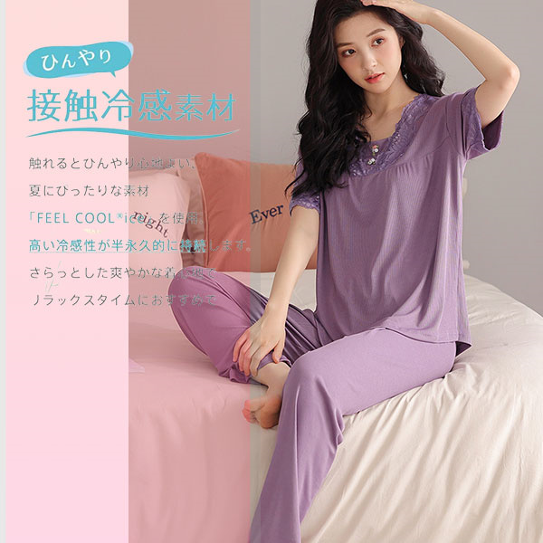 パジャマ 半袖 レディース 冷感素材 ルームウェア 無地 部屋着 リラックスウェア 上下セット ロングパンツ 寝巻き 春夏 母の日 ギフト 薄手