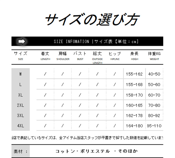 サイズ:/M/L/XL/2XL/3XL/4XL