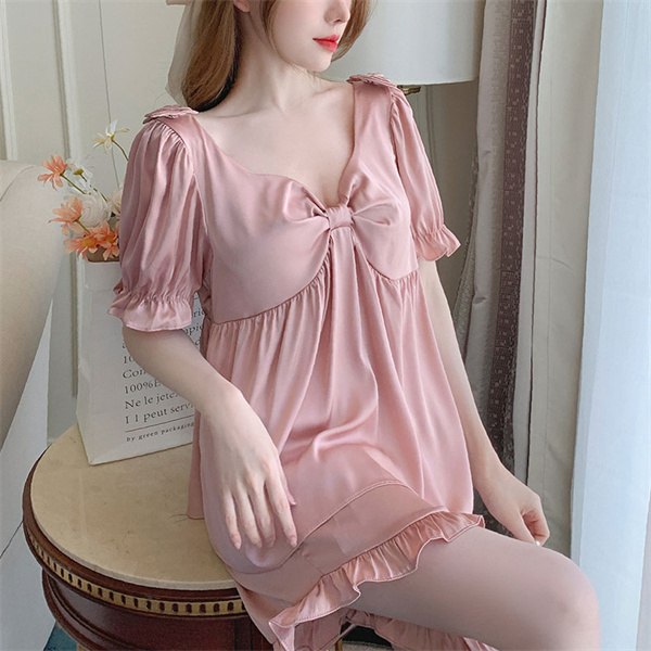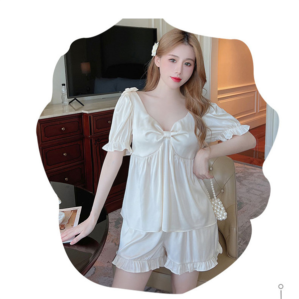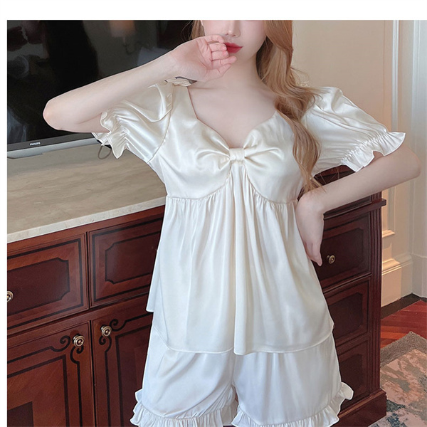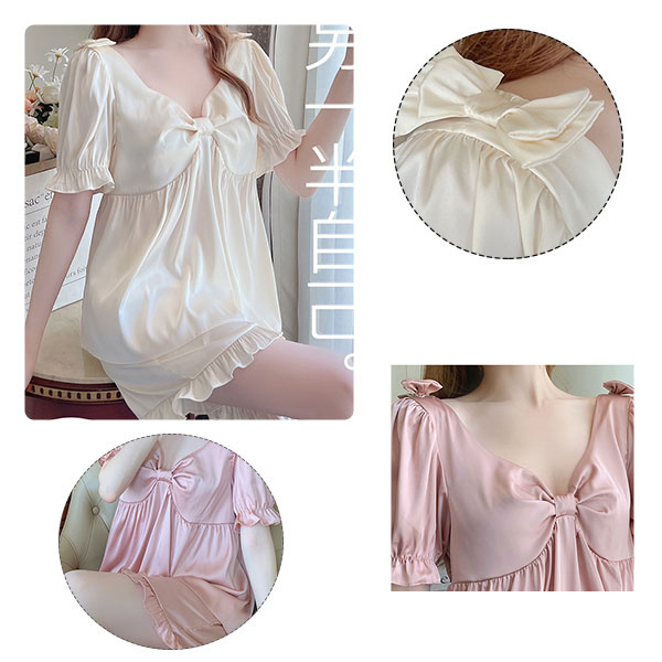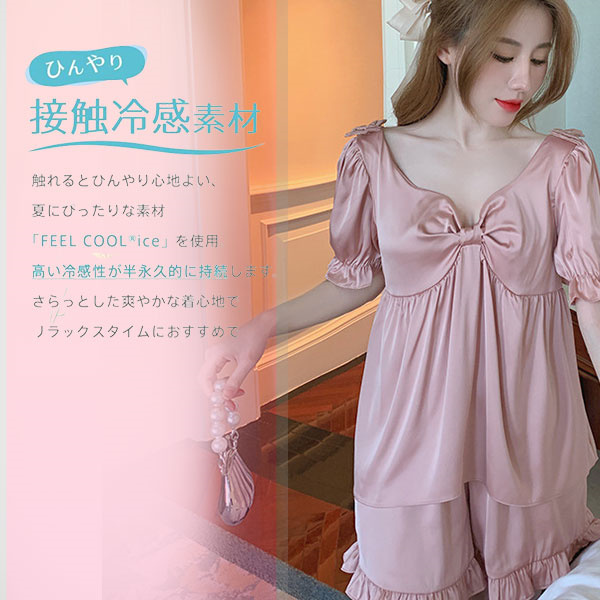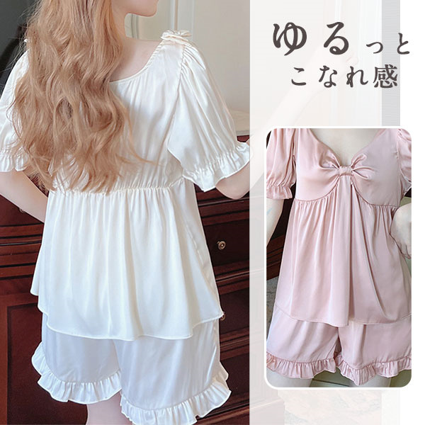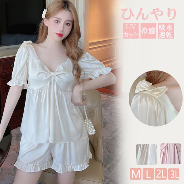 ポイント超超祭 ルームウェア パジャマ 半袖 レディース 春夏 冷感素材 部屋着 ナイトウェア 無地 蝶結び 綿 上下セット ショートパンツ 可愛い 寝間着 薄手