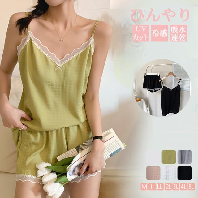 ルームウェア パジャマ 春夏 レディース 無地 ノースリーブ 上下セット 冷感素材 ゆったり ショートパンツ セットアップ 部屋着 ナイトウェア