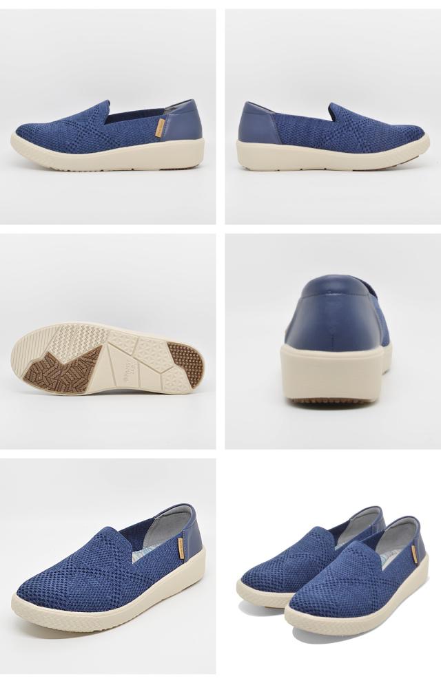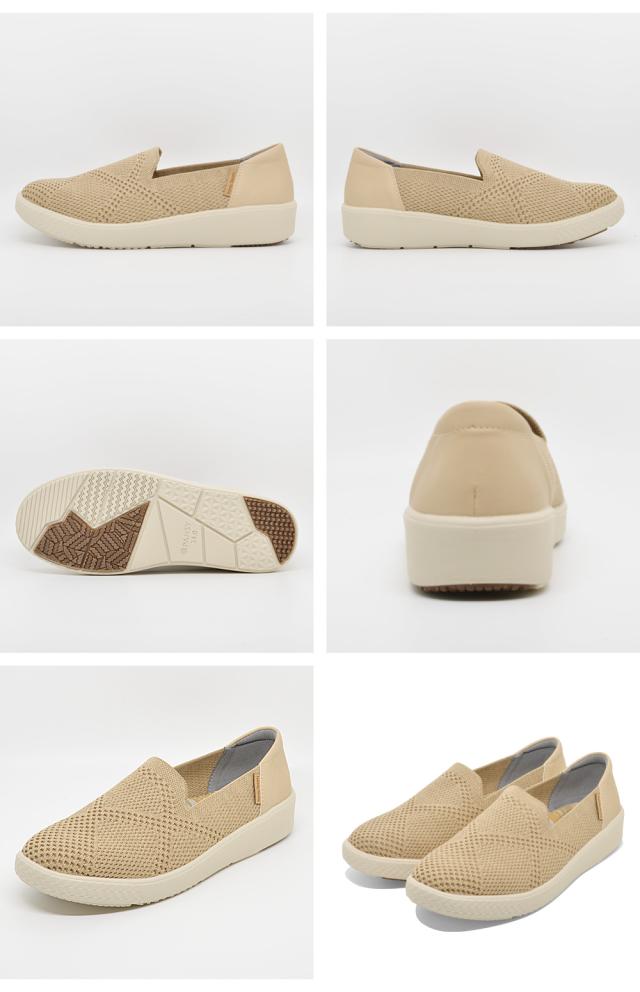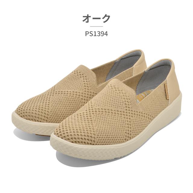 柔らかく通気性に優れたメッシュ状のニット素材を使用した軽量スリッポンスニーカー。足への負担が少なく、軽やかな歩き心地で一日中歩く日でもストレスフリー♪