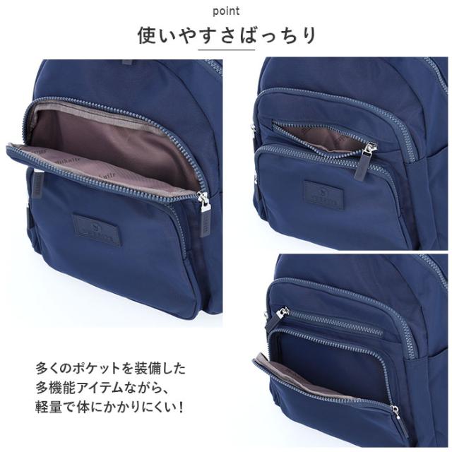 | 商品説明 | ・すっきり収納♪デイリー使いにぴったりな「CIARA 多機能リュック」が新登場。 【ちょうどいいサイズ感】 ・大きすぎず小さすぎない!お出かけに必要な小物がしっかり収まり、満員電車などの人混みでも場所を取らないのが嬉しい♪ 【使いやすさばっちり】 ・多くのポケットを装備した多機能アイテムながら、軽量で体にかかりにくい! 【ガバっと開くダブルファスナー開口】 ・メインルーム開口部は、ラウンド型に開くダブルファスナー式。左右どちらからも開閉できて、出し入れもラクラク。 【B5サイズ対応でしっかり入る♪】 ・内側はB5サイズのノートや11インチのipadが縦向きにすっぽり。程よくマチがあり、見た目以上の収納力。 【小物が迷子になりにくい9ポケット】 ・細々した物をまとめておけるポケット、移動中も便利なシークレットポケットなど充実のポケット収納。 【使い勝手抜群のナイロン製】 ・丈夫で傷つきにくいナイロン素材を採用。衝撃に強くはっ水性もあるので、汚れや水滴もサッと拭き取るだけ!気にせずガシガシ使えちゃう!(※完全防水ではありません。濡れた状態で放置しないでください。) 【アクセントをプラス】 ・ロゴ入りのフロントタグやファスナー引き手がさりげないアクセントに。 【お気に入りをチョイス】 ・ベーシックカラーやトレンド感のあるくすみカラーをラインナップ。コーデを選ばず使える万能アイテム。 【ポケット仕様】 ・メインルーム:ファスナーポケット×2、オープンポケット×1 ・前面:ファスナーポケット×3 ・サイド:ギャザーポケット×2 ・背面:シークレットポケット×1 |