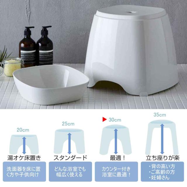 風呂椅子では少し高めの約30cmで座ったり立ったりがしやすく、座り心地が良いです。