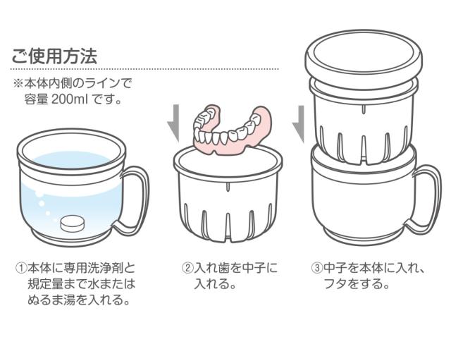 入れ歯の洗浄、保管ができるコップ