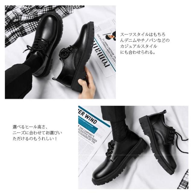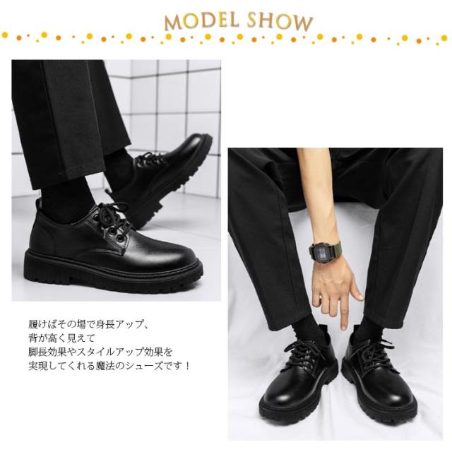 | 6/8/10cm、足元のおしゃれを楽しめる!メンズシークレットシューズ 履けばその場で身長アップ、背が高く見えて脚長効果やスタイルアップ効果を実現してくれる魔法のシューズです! 程よいツヤ感で落ち着きのあるビジネスマンに適した質感。 スーツスタイルはもちろんデニムやチノパンなどのカジュアルスタイルにも合わせられる。 選べるヒール高さ、ニーズに合わせてお選びいただけるのもうれしい! 結婚式やビジネスシーン、デートなどあらゆるシーンで活用いただけます。 | |