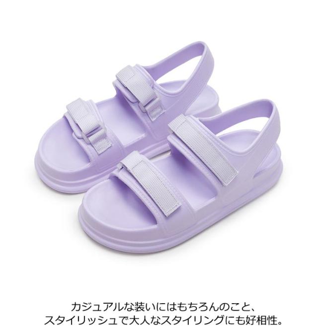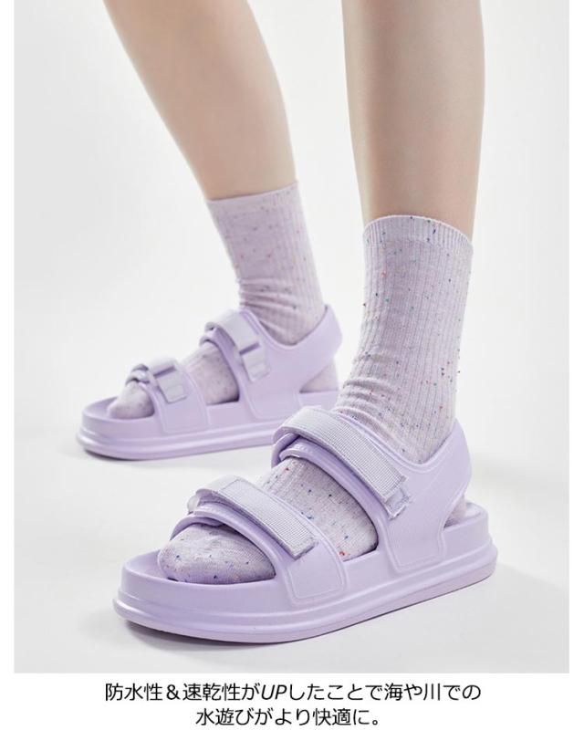 4cm レディース スポーツ 脱げにくい 黒 軽量 防水 EVA フラット底 ストラップサンダル スポーツサンダル サンダル 歩きやすい 痛くない 履きやすい 厚底 シンプル かわいい パープル ブラック ホワイト マジックテープ