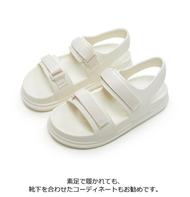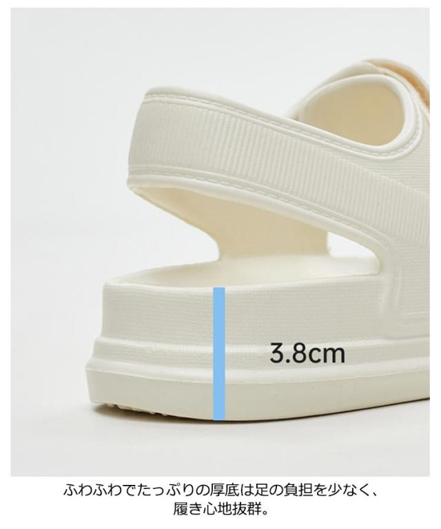 | クッション性・防水・速乾・軽量・歩きやすいを叶えたEVA厚底ストラップサンダルが登場! とにかく軽くて使いやすいEVAサンダル。 長時間履いても疲れにくく、より軽量にしつつもグリップ性能と耐久性に優れ、快適な歩行をサポートしてくれる 防水性&速乾性がUPしたことで海や川での水遊びがより快適に。 ふわふわでたっぷりの厚底は足の負担を少なく、履き心地抜群。 濡れてもOKなEVA素材は丸洗いもできてお手入れも楽ちん。 カジュアルな装いにはもちろんのこと、スタイリッシュで大人なスタイリングにも好相性。 素足で履かれても、靴下を合わせたコーディネートもお勧めです。 街、旅行、アウトドア、フェス・・・あらゆるシーンで皆様のお供として活躍してくれる1足となっています。 | |