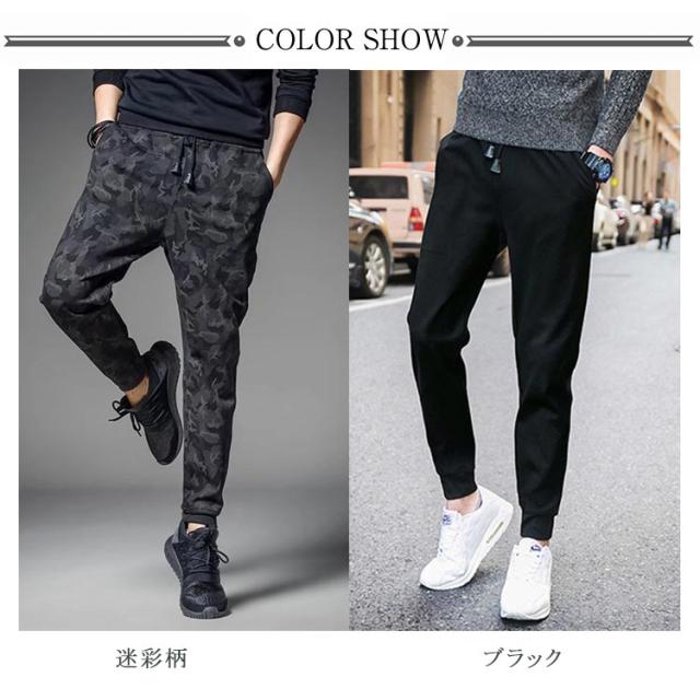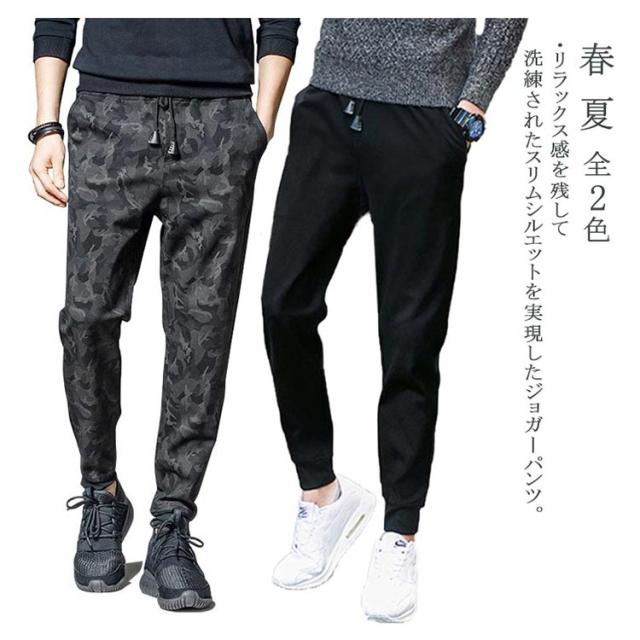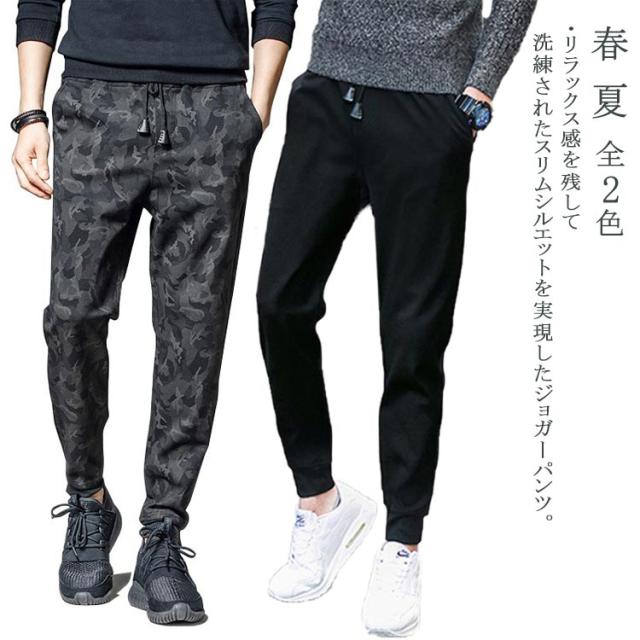 スウェットパンツ ジョガーパンツ メンズ ジャージ パンツ イージーパンツ テーパードパンツ ウェストゴム ポケット付き スキニー スリム ダンス トレーニング スポーツ カジュアル 大きいサイズ カモフラ 総柄 迷彩柄 無地 ブラック 春 夏 全2色