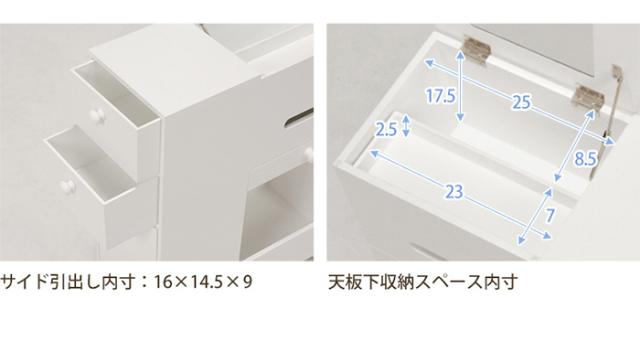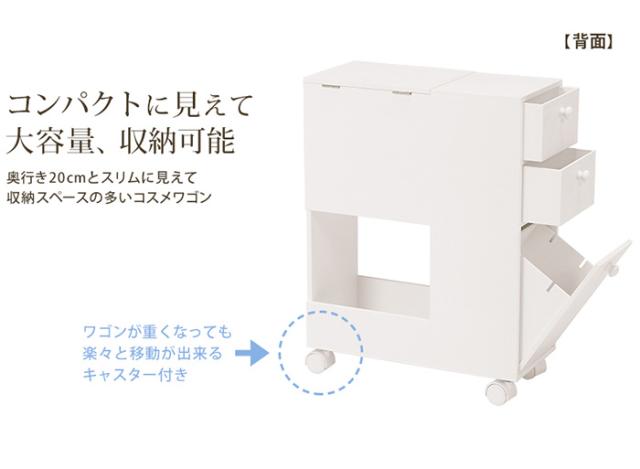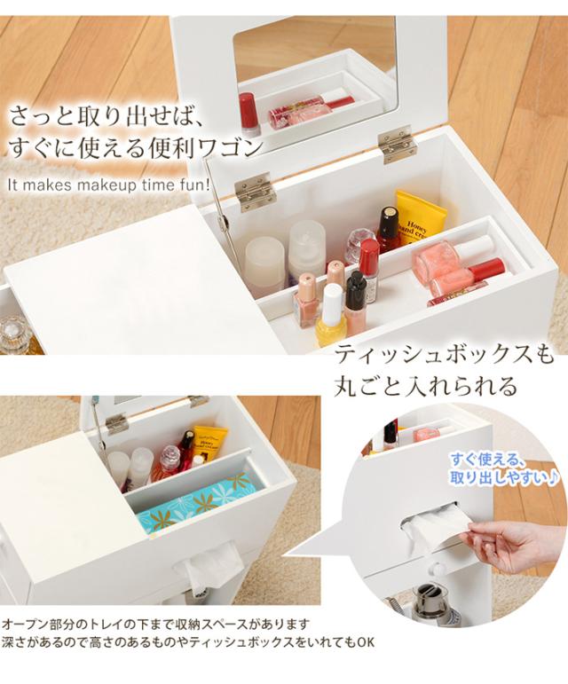 ドレッサー おしゃれ コスメワゴン ホワイト MUD-6648WH ミラー付 スリム 大容量収納 引出し付 キャスター付 ティッシュ収納可 ダストボックス付 メイク用品