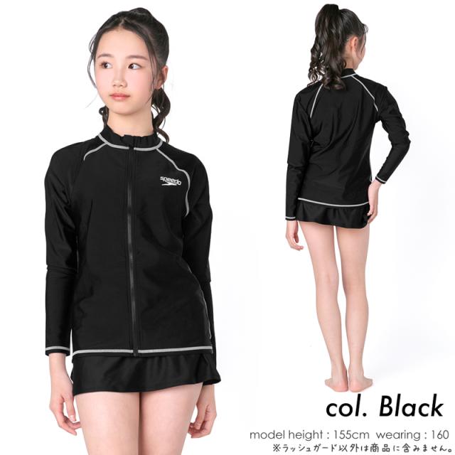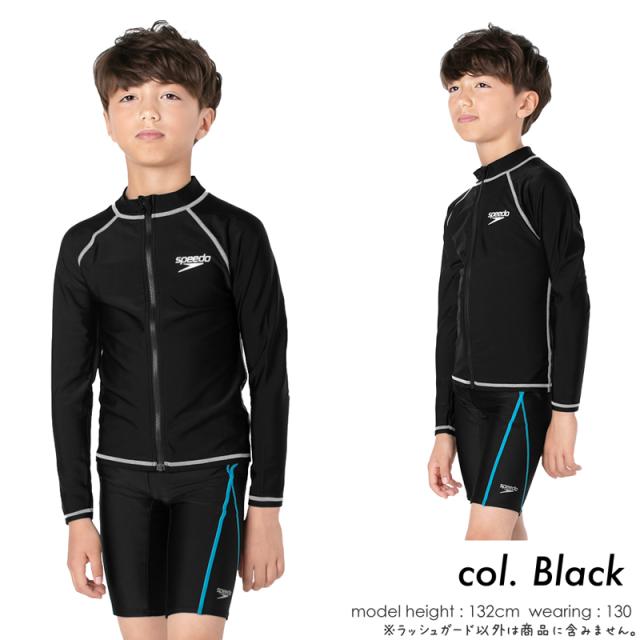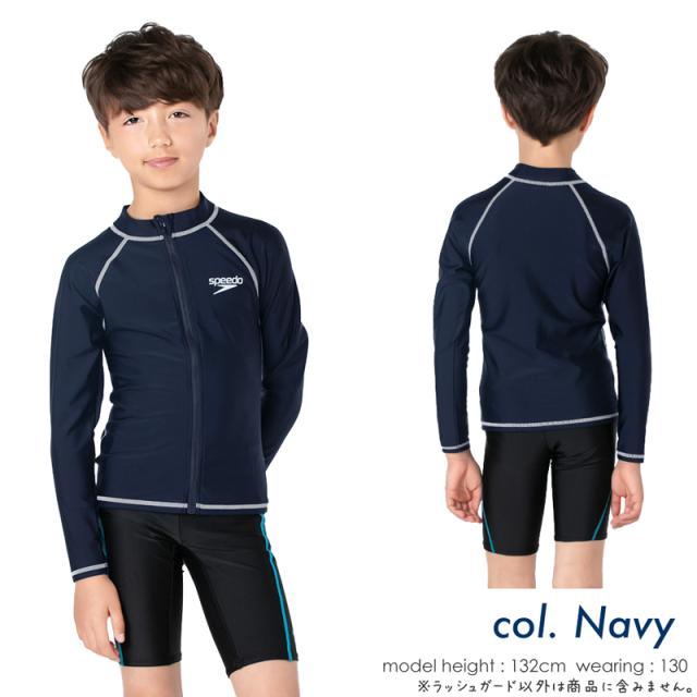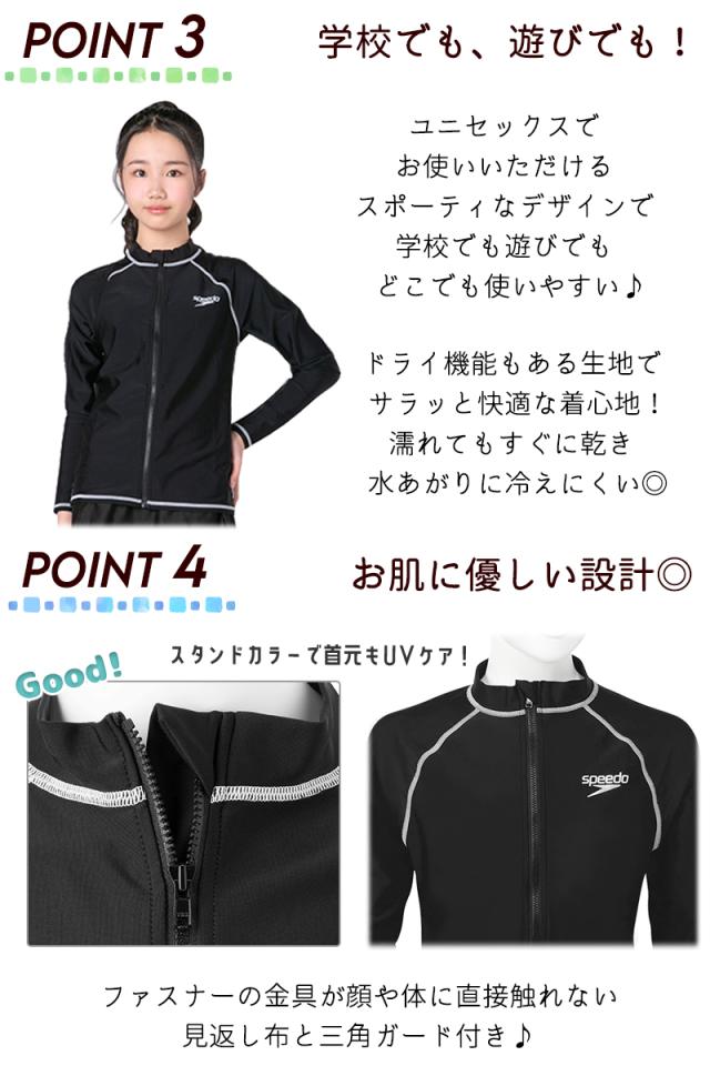 speedo スピード スクール水着 ジュニア キッズ 水着 ラッシュガード 男の子 女の子 130 140 150 160 《レビュー記入で送料無料》学校 授業 スイミング プール 体型カバー 長袖 フードなし ファスナー スポーティ ロゴ 無地 小学生 中学生 高校生 紫外線カット : SD65J17