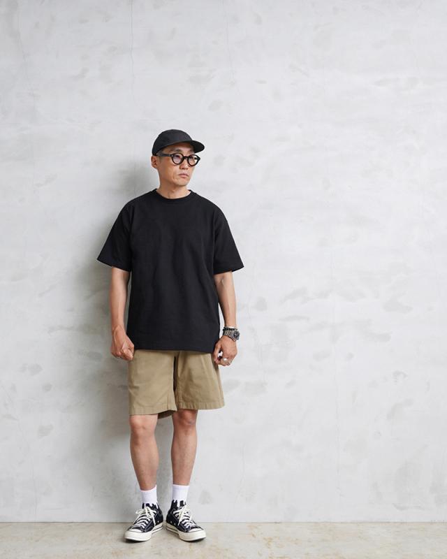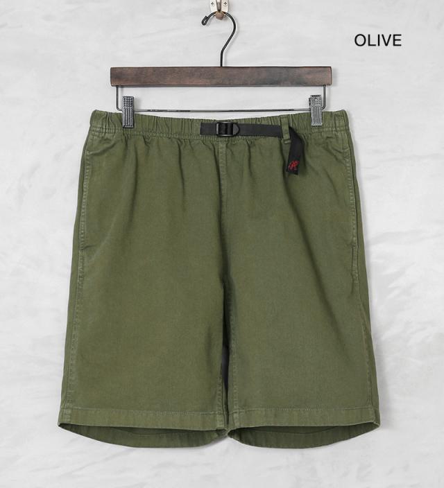 ウエストには登山家が背負うデイパックのハーネスから着想を得て、片手で簡単にサイズ調節ができるウェビングベルト。股下にはクライミング時に必須な開脚を妨げないよう、180度開脚可能なガゼットクロッチなどGramicci独自のディテールが快適性と足運びの良さを実現しました。「G-SHORT」はグラミチのショーツの中でもゆったりめのシルエットが特徴。生地にはオーガニックコットン使用のコットンツイルを採用しているので、激しい動きにも耐えられる耐久性を持ち、ハリコシのある生地感は染めの雰囲気をよりよくしてくれます。
