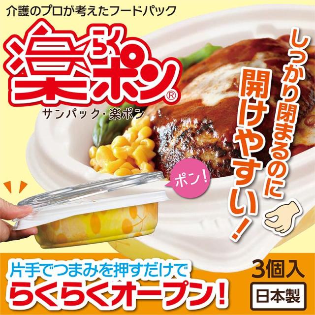サンパック 楽ポン 3組入 【レンジ対応容器 電子レンジ可 フードパック 温め 使い捨て容器】