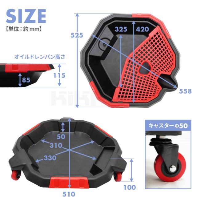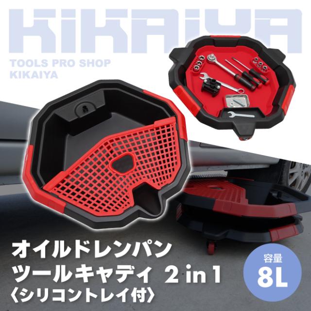 オイルパン オイル受け ツールキャディ 2in1 シリコントレイ付 8L 廃油受け ドレンパン オイル交換 クーラント交換 ポリプロピレン製 KIKAIYA