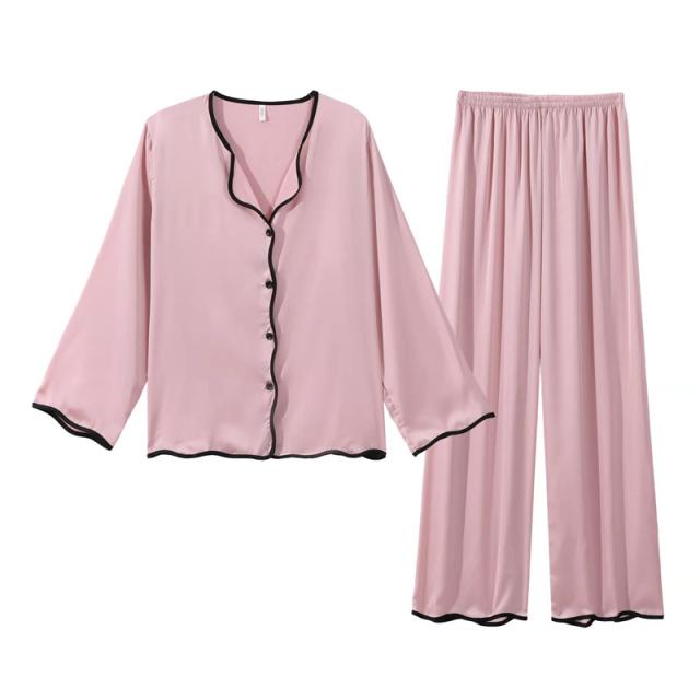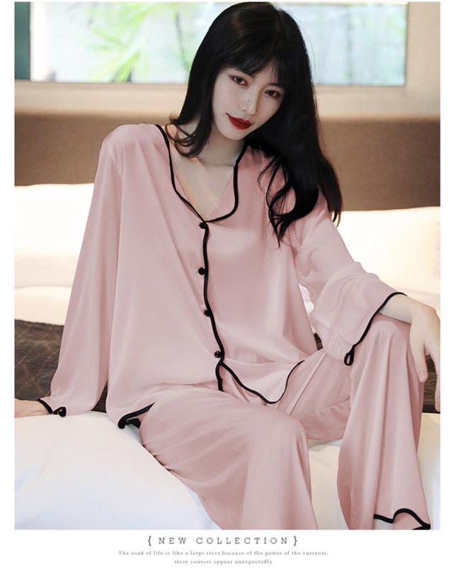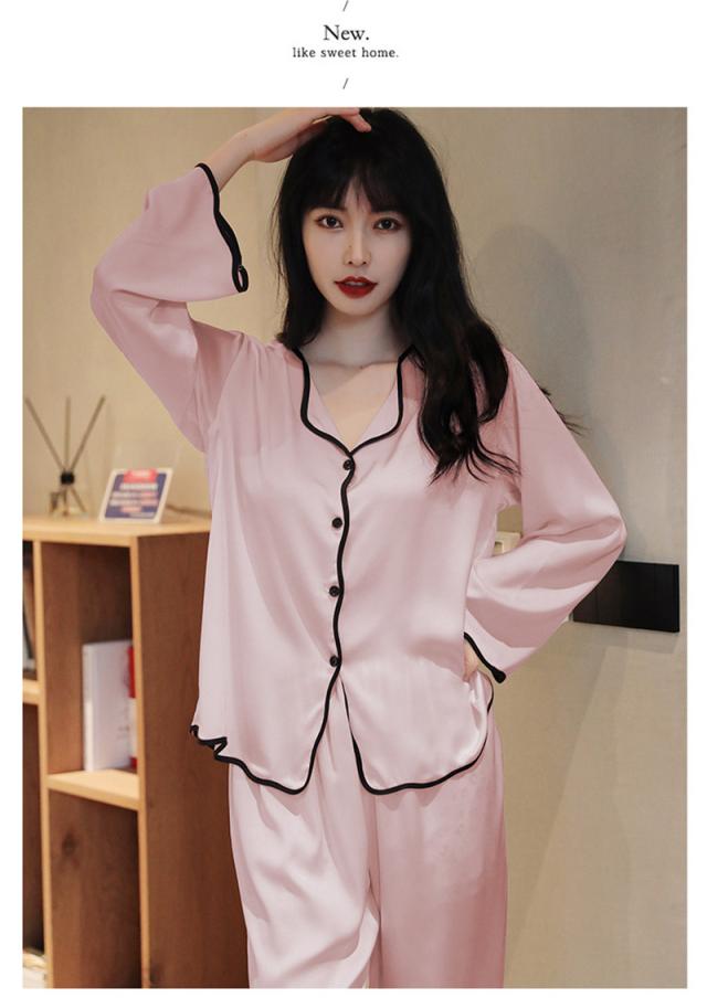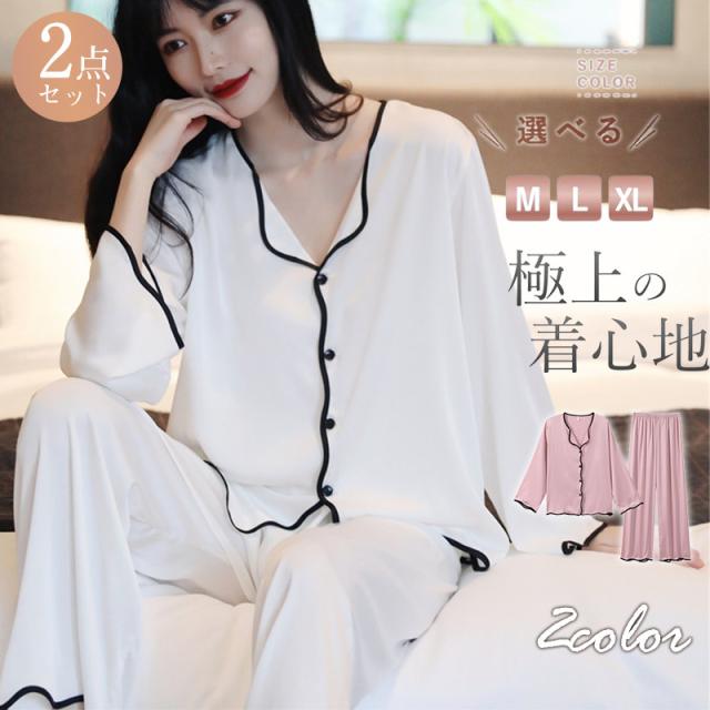 パジャマ レディース ルームウェア 長袖 長ズボン 冷感素材 シルク調 上下セット 薄手 ナイトウェア シンプル 春夏 部屋着 寝