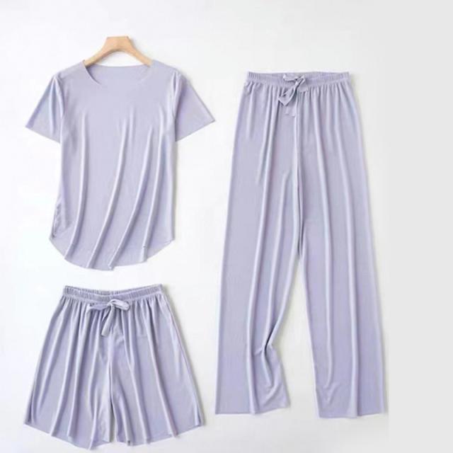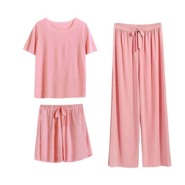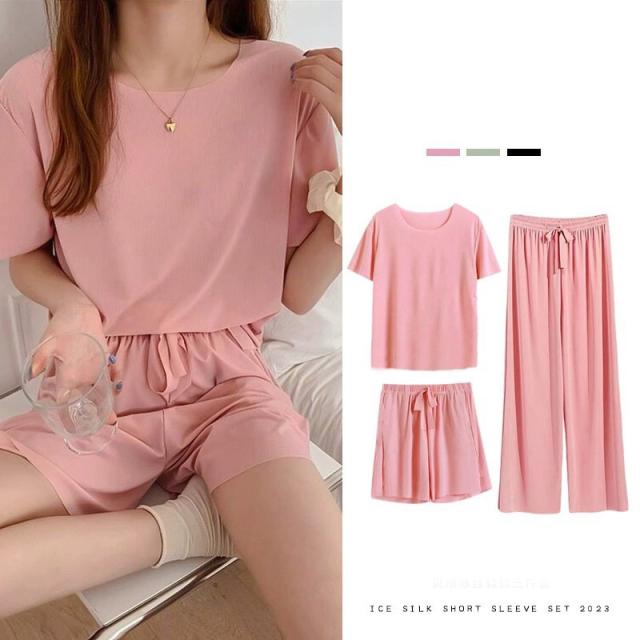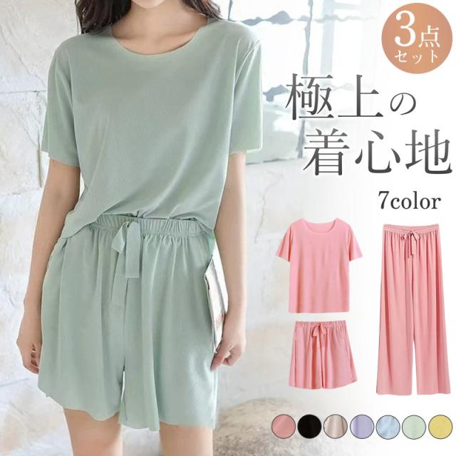 パジャマ レディース ルームウェア 3点セット 冷感素材 上下セット 半袖 ショートパンツ ロングパンツ ゆったり 涼しい 寝間着
