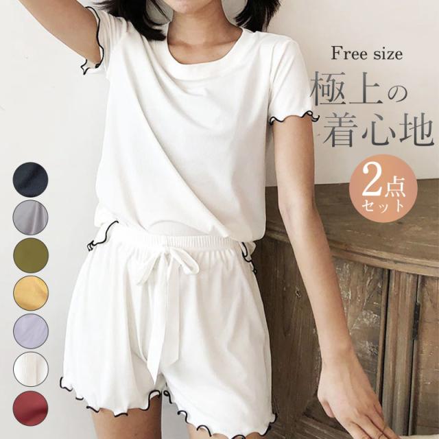 パジャマ レディース ルームウェア 上下セット 婦人用 接触冷感 半袖 短パン フリル アイスシルク 涼しい 部屋着 寝間着 夏