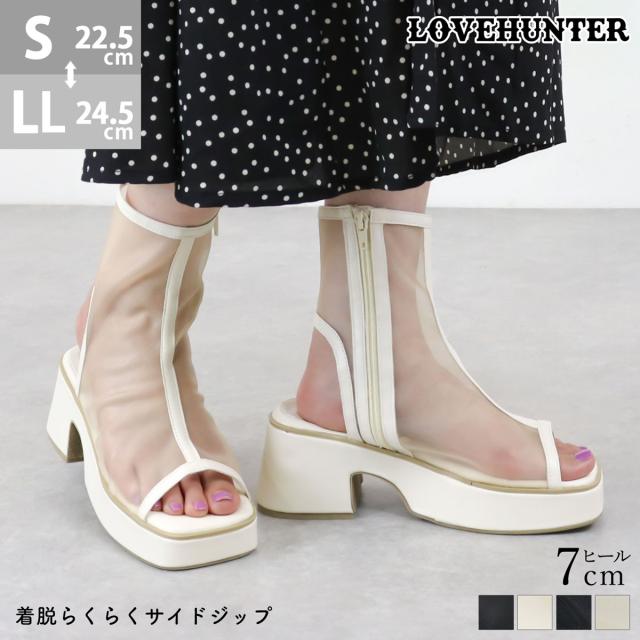レディース ブーツサンダル オープントゥ スクエアトゥ チャンキーヒール 太ヒール 7cmヒール No.1591 22.5cm-24.5cm LOVEHUNTER ラブハンター