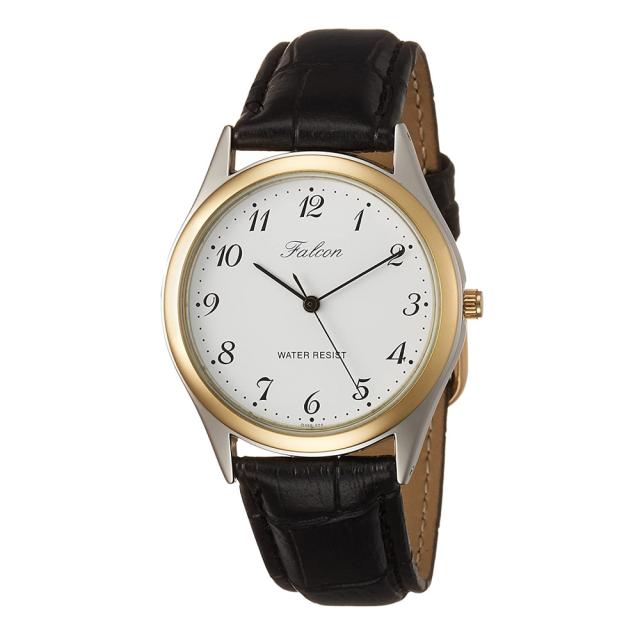 送料無料メール便 シチズン ファルコン 腕時計 日本製ムーブメント 革ベルト ホワイト/ブラック メンズ 紳士 QA66-504/9808 ポイント消化