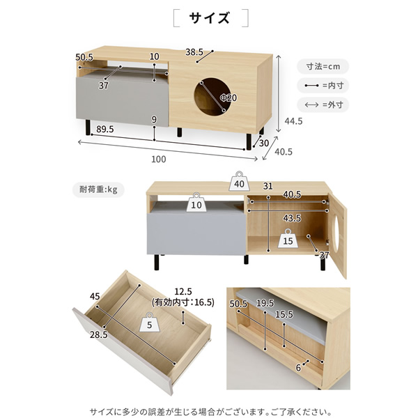 幅100×奥行40.5×高さ44.5cm [内寸]