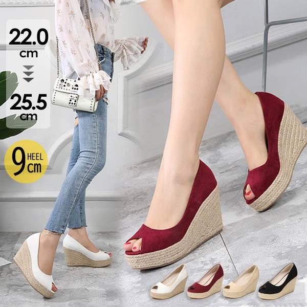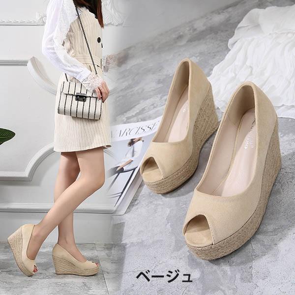 【レビュー投稿で+5%還元】オープントゥ パンプス 前開き スエード サンダル かかとあり レディース ウェッジソール 小さいサイズ 大きいサイズ ストーム 厚底 女性 美脚 おしゃれ カジュアル 通勤 会社 シンプル 夏 大人 かわいいサマー ホワイト ベージュ