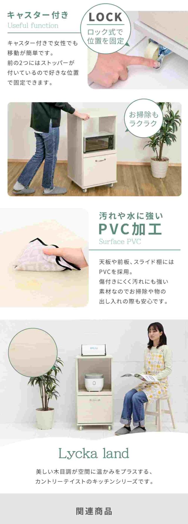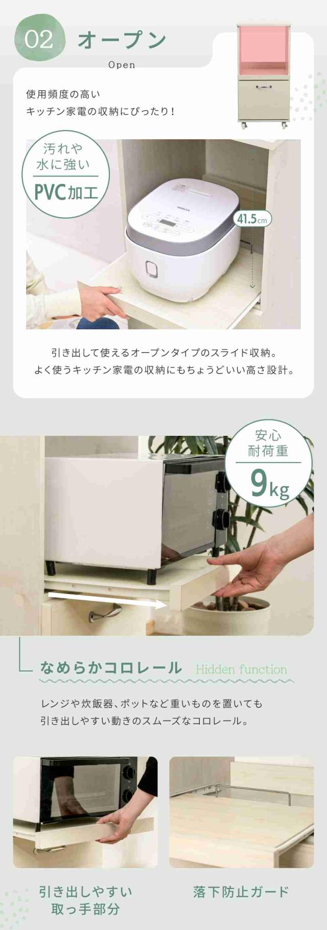 コンパクトながらも豊富な収納スペースで、レンジや家電も効率よくまとめられます。