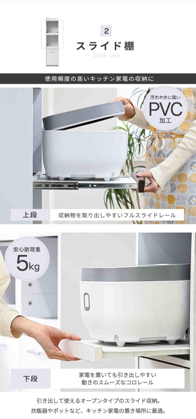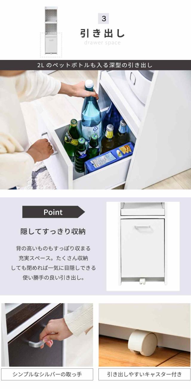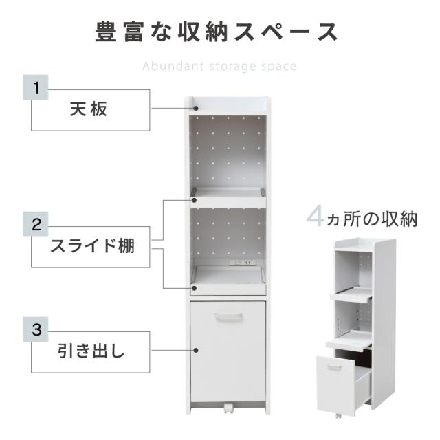 ちょっとした隙間や収納スペースにお困りの方にぴったりな、スリムタイプの家電収納家具。
