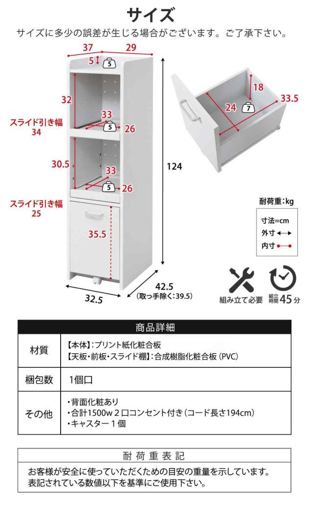 サイズ/幅32.5×奥行42.5×高さ120cm