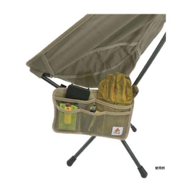 アームの無いチェアの足部分に収納ポケットを装着して小物の収納ができます。