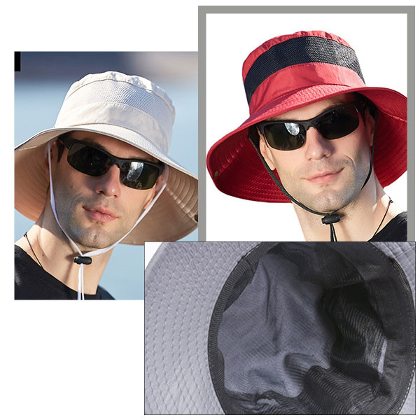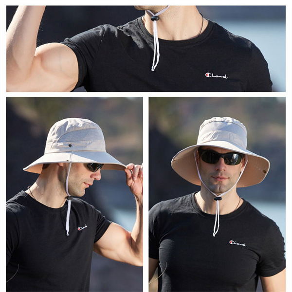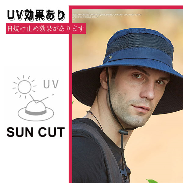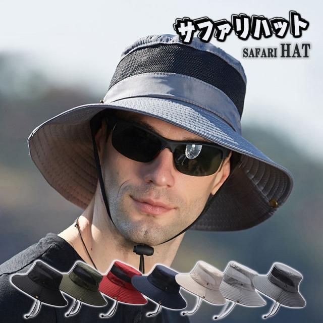 ポイント超超祭 サファリハット バケットハット メンズ ハット 釣り ゴルフ メッシュ アウトドア 通気性 折りたたみ つば広 帽子 あご紐付き 日焼け 登山