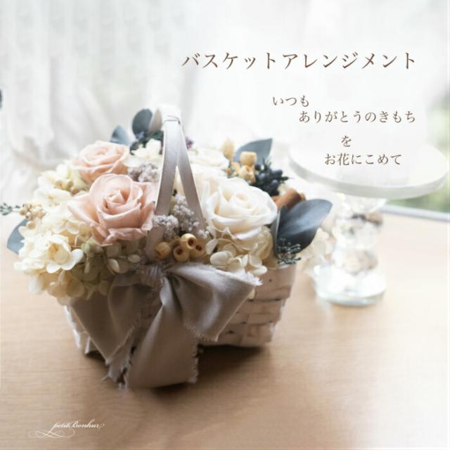 誕生日 プレゼント フェミニンカラー プリザーブドフラワー バスケット 幸せを詰込んだ プレゼント
