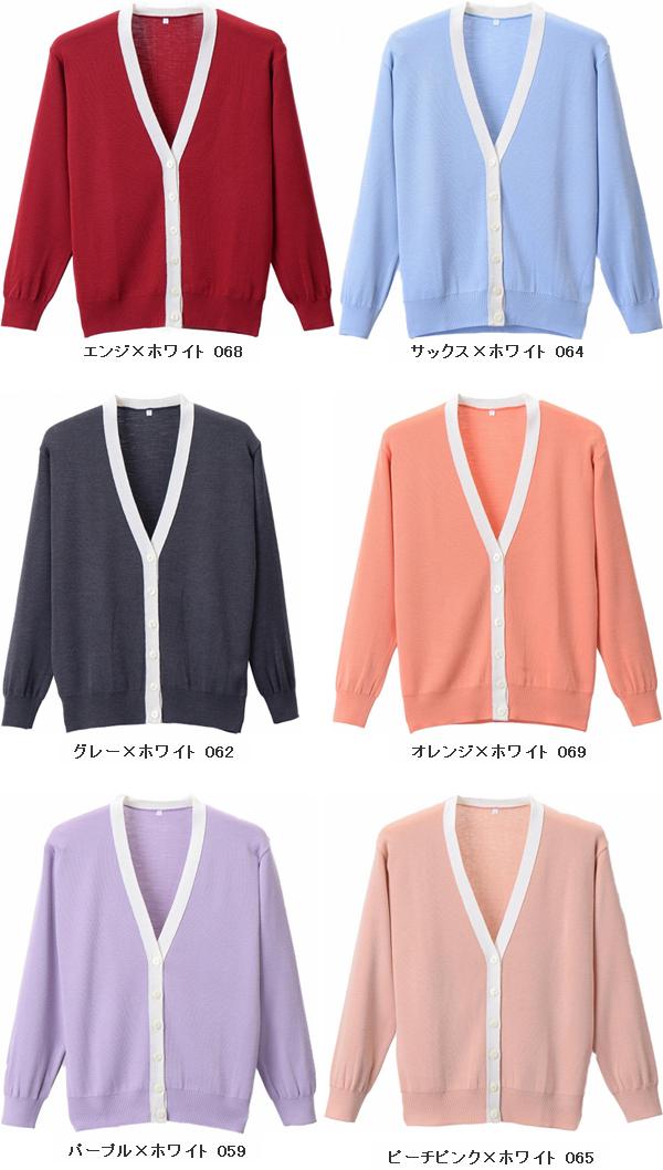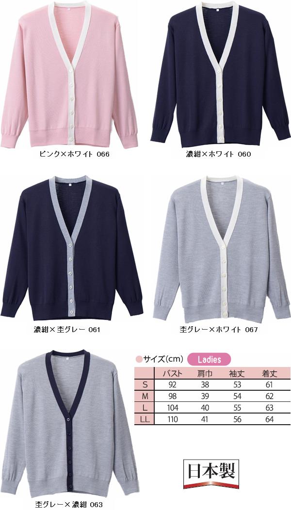 D-1013 抗ピル 配色 カーディガン レディース用 全11色 日本製【メーカー直送品】【同梱/代引不可】【カーディガン オフィスウェア 医療ウェア ナースウェア】