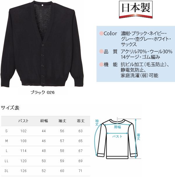 D-2001 抗ピル メンズ カーディガン 全7色 日本製【メーカー直送品】【同梱/代引不可】【カーディガン オフィスウェア 医療ウェア ナースウェア】