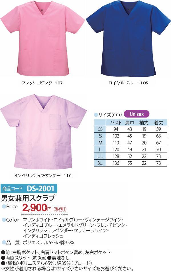 ■DS-2001 男女兼用 スクラブ 全9色 SS?3L