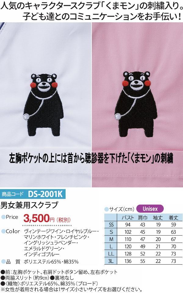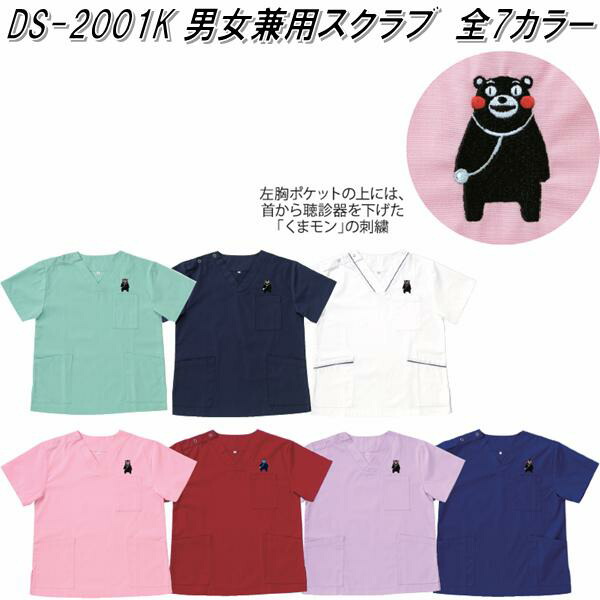 ■DS-2001K 男女兼用 スクラブ くまモン 全7色 SS?3L