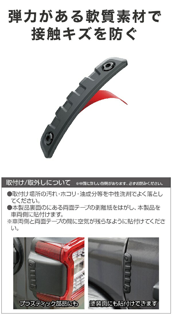 ●弾力がある軟質素材でドアエッジを傷から護り、他車への接触キズも防ぎます。