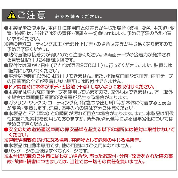 ●両面テープでボディ表面にぴったりと貼付くため、取付後、隙間に苔等が発生しにくい設計です。