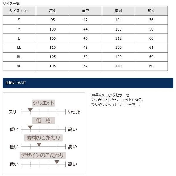 ●サイズ:S、M、L、LL、BL、4L